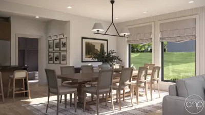 Upon entering, you're immediately welcomed into the heart of the home—the spacious kitchen, which flows seamlessly into a generously sized dining room ideal for hosting family meals or dinner parties. Beyond the dining area, the home opens up dramatically into a grand great room. This expansive space features a soaring cathedral ceiling and is filled with natural light thanks to abundant windows on both the main and upper levels. An open staircase and loft overlook enhance the home's airy, open atmosphere.